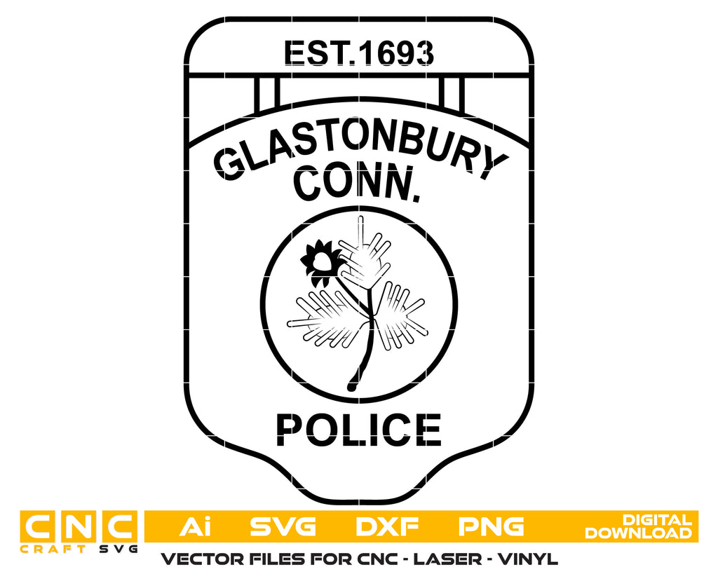 Showcase respect and appreciation for Connecticut law enforcement with this Glastonbury Police Patch SVG — a clean, high-quality vector design ideal for crafting, printing, engraving, displays, and collector projects.