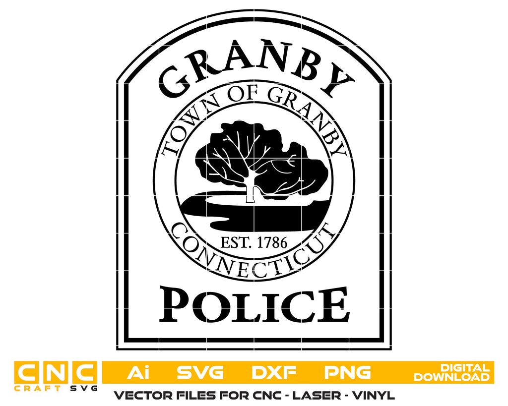 Showcase Connecticut law enforcement pride with this Granby Police Department Patch SVG — a sharp, professionally crafted vector design perfect for printing, crafting, engraving, and collectible display projects.