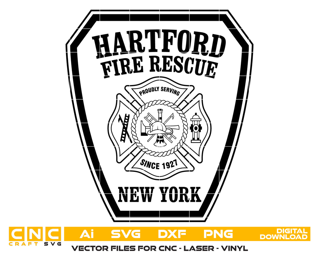 Celebrate the bravery, service, and dedication of New York firefighters with this Hartford Fire Rescue Patch SVG — a crisp, high-quality vector design perfect for crafting, printing, engraving, and commemorative projects.