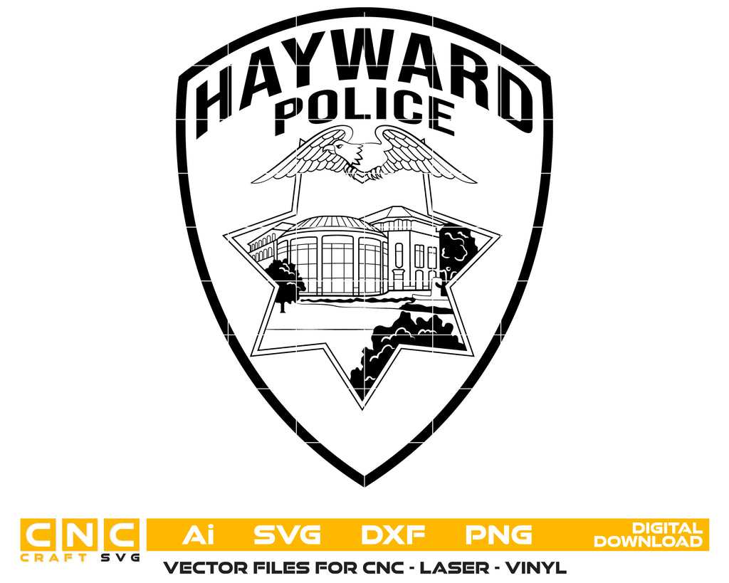 The Hayward Police Department Patch SVG is a detailed California law enforcement emblem representing authority, service, and community protection. Designed in scalable vector format, this patch is perfect for CNC cutting, laser engraving, vinyl decals, uniform embroidery, signage, and commemorative plaques. Ideal for collectors, officers, and custom police memorabilia, it maintains crisp detailing on metal, wood, fabric, and acrylic surfaces while honoring the Hayward Police Department.