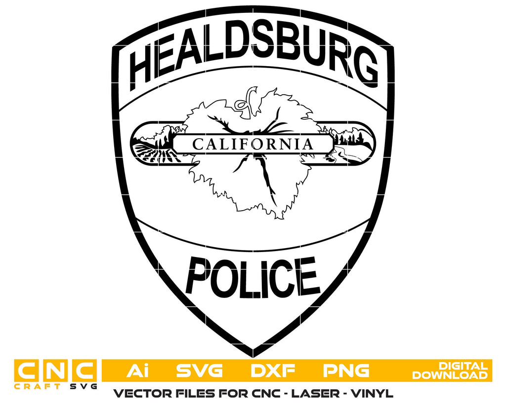 Celebrate the heritage of the Healdsburg Police Department, California, with this meticulously designed Police Patch SVG. Crafted in scalable vector format, it’s perfect for CNC cutting, laser engraving, vinyl decals, apparel printing, signage, and collector displays. This design highlights California law enforcement pride through detailed lines and clean vector precision — ideal for professionals, collectors, or custom projects.
