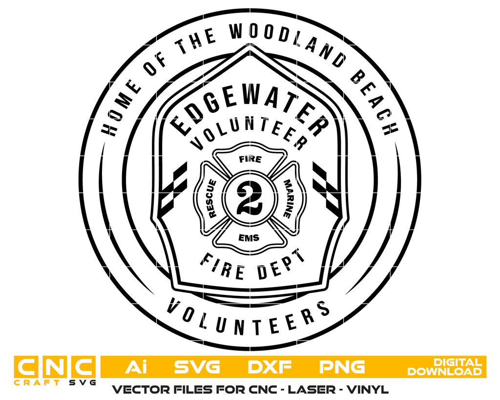 Download the Woodland Beach Edgewater Volunteers Logo in a high-quality, scalable vector format. Ideal for laser engraving, Cricut, Silhouette, Glowforge, and CNC machines. Use this design to create tribute signs, apparel, decals, mugs, and personalized gifts honoring the dedication of volunteer firefighters and community heroes.