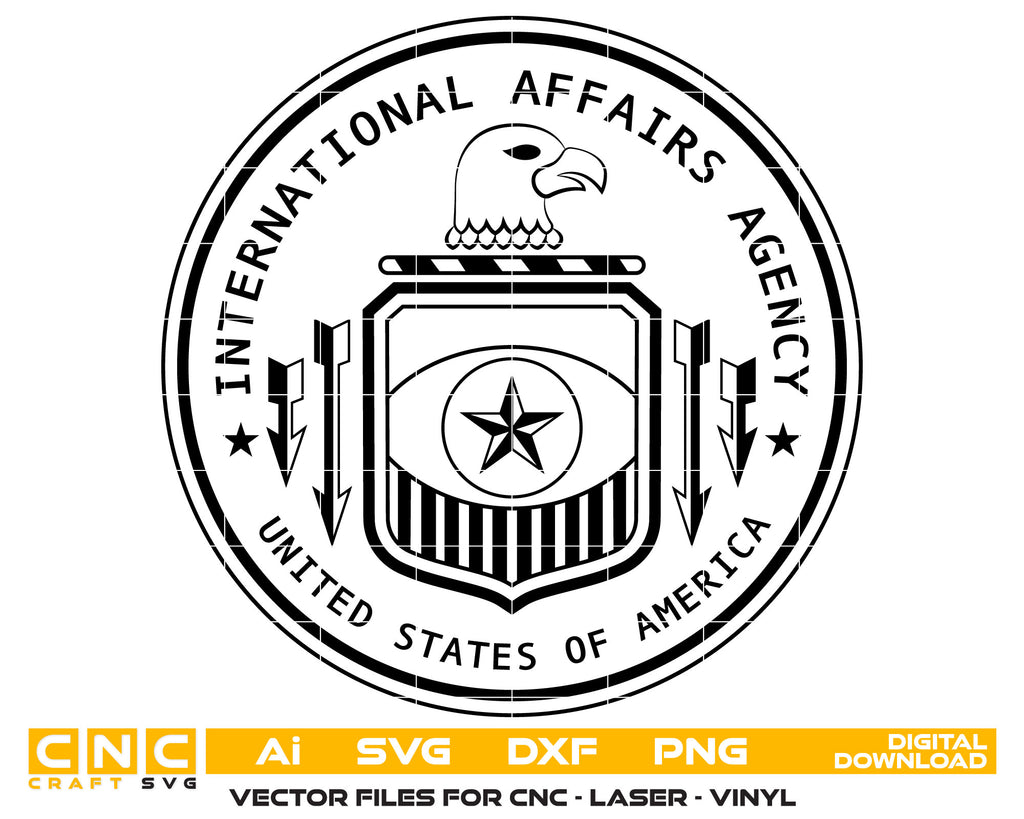 Summary: Honor the International Affairs Agency with this professionally crafted badge, ready for precision engraving and CNC cutting.