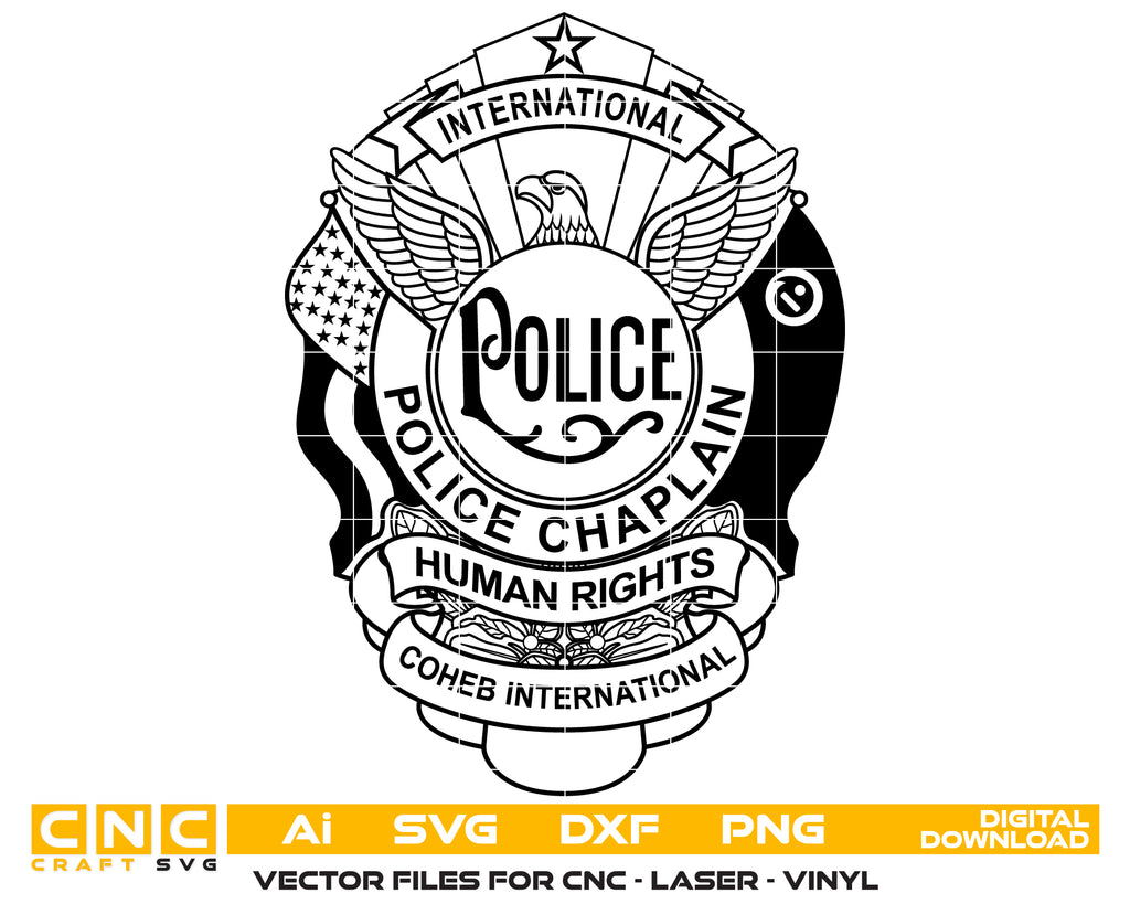 Honor the dedication, service, and humanitarian mission of law enforcement chaplains with this International Police Chaplain Human Rights Agency Badge SVG — a crisp, high-quality vector design perfect for crafting, printing, engraving, and commemorative projects.