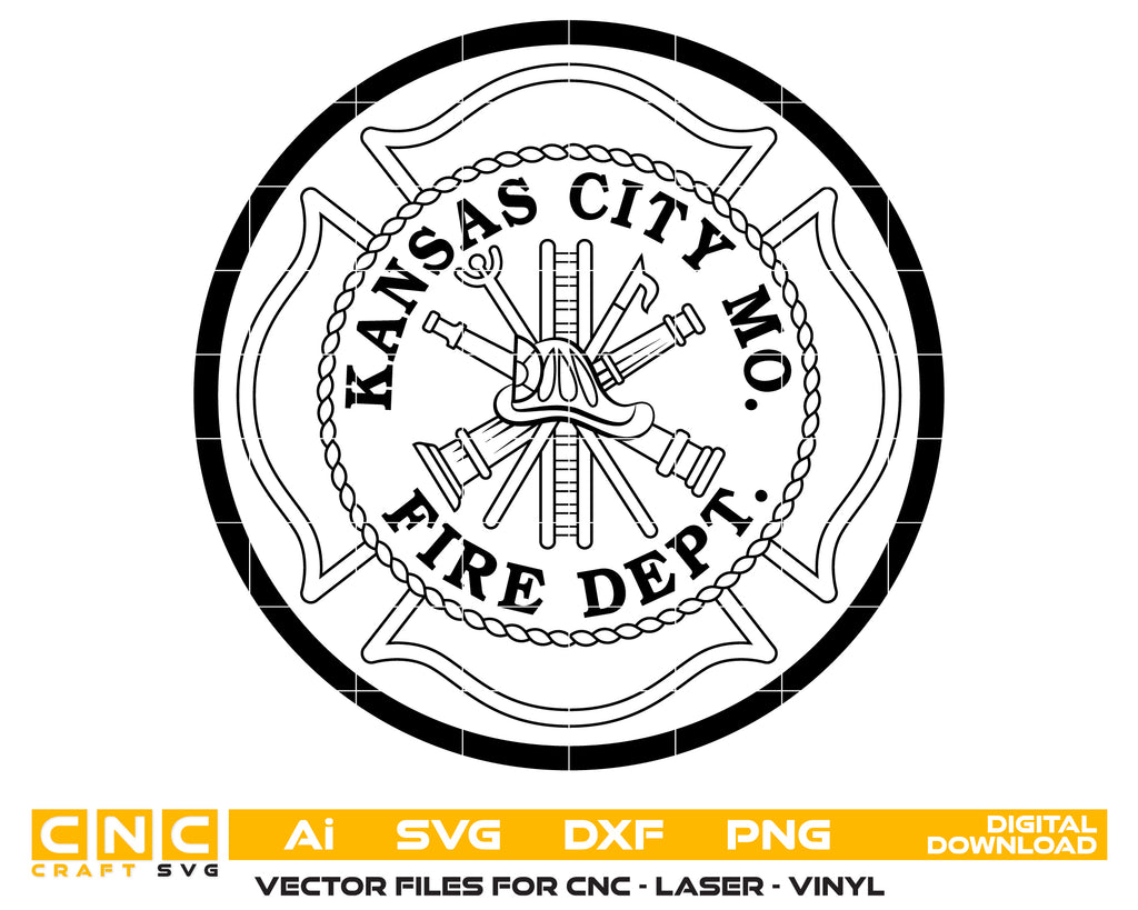 The Kansas City Fire Department Badge SVG honors courage, duty, and dedication within the Missouri firefighting community. Expertly crafted in scalable vector format, this badge is perfect for CNC cutting, laser engraving, vinyl decals, uniforms, signage, plaques, and collectible memorabilia. Ideal for fire departments, engravers, and design enthusiasts, it delivers sharp detailing on metal, wood, fabric, or acrylic, showcasing pride in the Kansas City Fire Department.