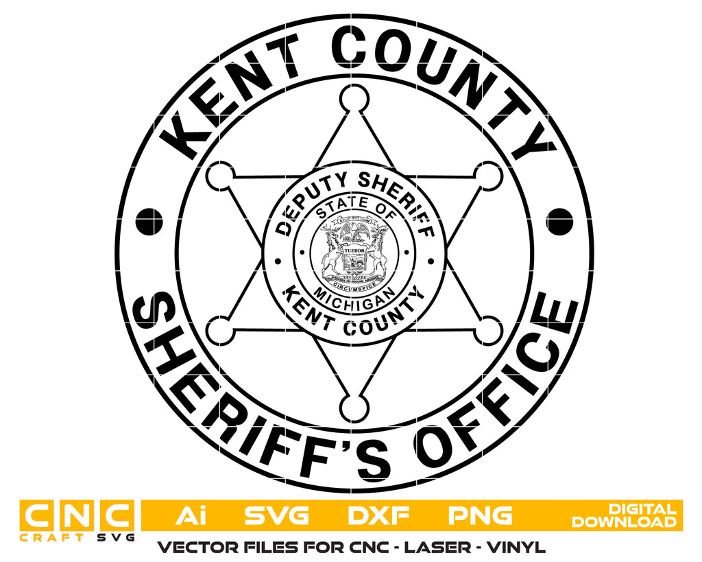 Honor the service, dedication, and professionalism of Michigan law enforcement with this Kent County Sheriff’s Office Badge SVG — a crisp, high-quality vector design perfect for crafting, printing, engraving, and commemorative projects.