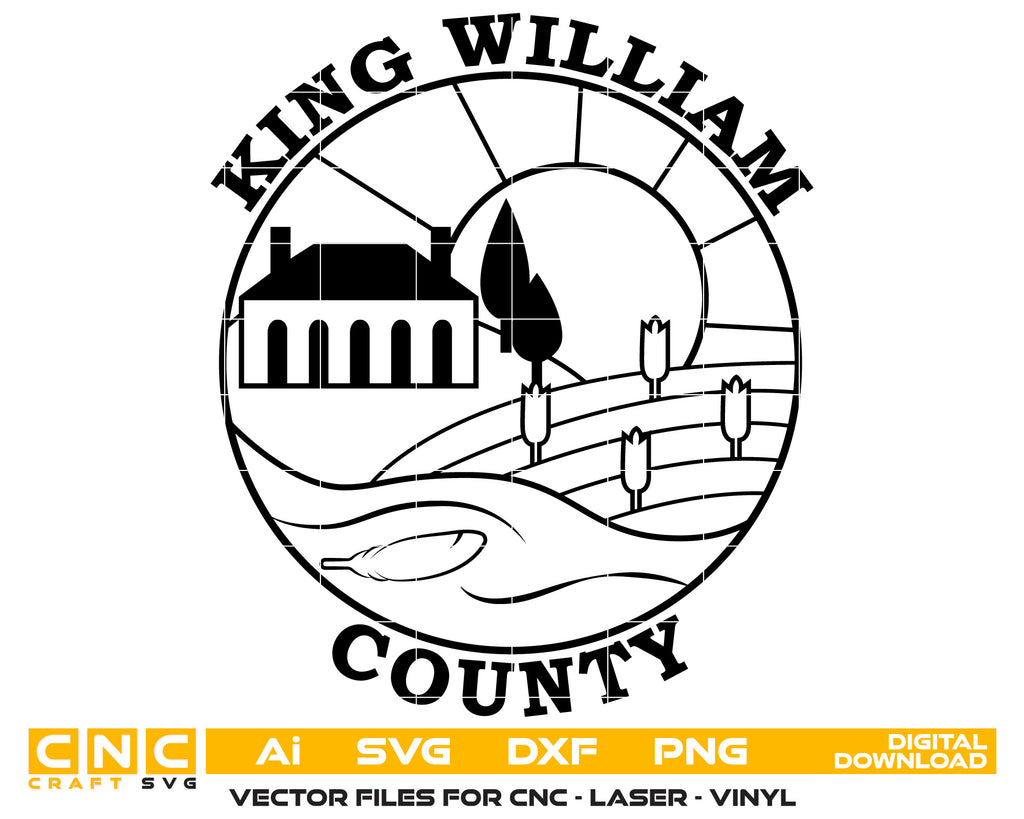 Showcase civic pride with this high-quality King William County logo in digital vector format. Perfect for use in Cricut, Silhouette, laser engraving, and CNC projects. Use it on apparel, tumblers, signs, decals, and more for custom city-themed crafts.