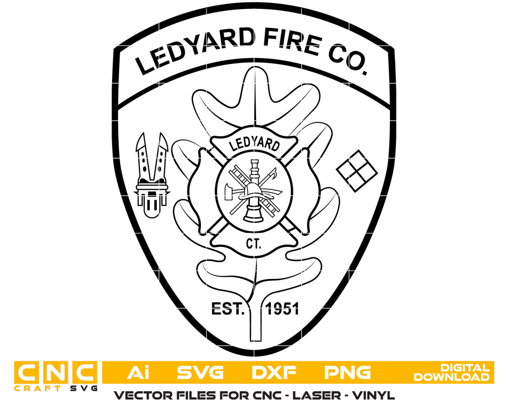 Celebrate the courage, dedication, and service of Connecticut firefighters with this Ledyard Fire Company Patch SVG — a crisp, high-quality vector design perfect for crafting, printing, engraving, and commemorative projects.