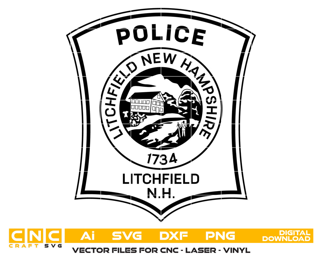 Honor the dedication, service, and professionalism of New Hampshire law enforcement with this Litchfield Police Patch SVG — a crisp, high-quality vector design perfect for crafting, printing, engraving, and commemorative projects.