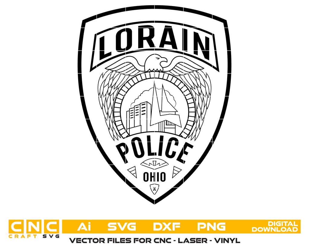 Create professional-quality law enforcement designs with this Lorain Police Department Ohio Logo SVG, a clean and detailed vector logo inspired by the Lorain Police Department in Ohio. Designed for accuracy and clarity, this logo artwork is ideal for high-quality cutting, engraving, and printing applications. Perfect for plaques, decals, uniforms, signage, and collectible police logos.