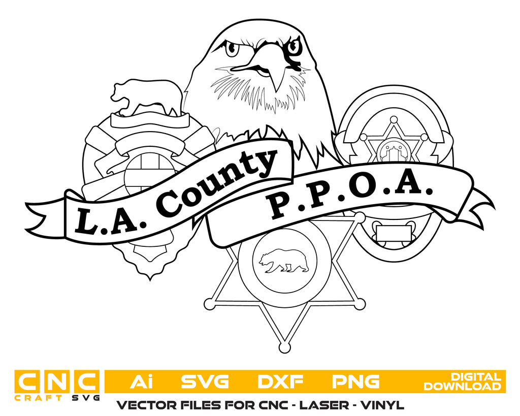 Create professional-quality law enforcement designs with this Los Angeles County PPOA Logo SVG, a clean and detailed vector logo representing the Los Angeles County Professional Peace Officers Association. Designed for accuracy and clarity, this logo artwork is ideal for high-quality cutting, engraving, and printing applications. Perfect for plaques, decals, uniforms, signage, and collectible law enforcement logos.