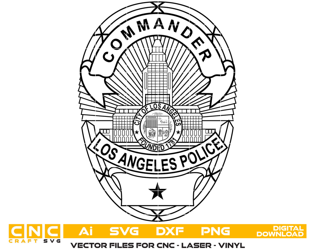 Honor the leadership, service, and professionalism of Los Angeles law enforcement with this Los Angeles Police Department Commander Badge SVG — a crisp, high-quality vector design perfect for crafting, printing, engraving, and commemorative projects.
