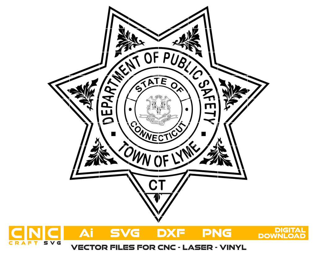 The Lyme Public Safety Sheriff Badge SVG is a finely detailed law enforcement emblem recreated in professional vector format. This badge is ideal for CNC cutting, laser engraving, vinyl decals, uniform decoration, commemorative plaques, and public safety signage. With sharp vector lines, it delivers scalable precision on wood, metal, fabric, and acrylic. A perfect choice for sheriff memorabilia, public safety recognition, and custom woodworking projects, this file ensures both authenticity and professional accuracy for engravers, crafters, and collectors.
