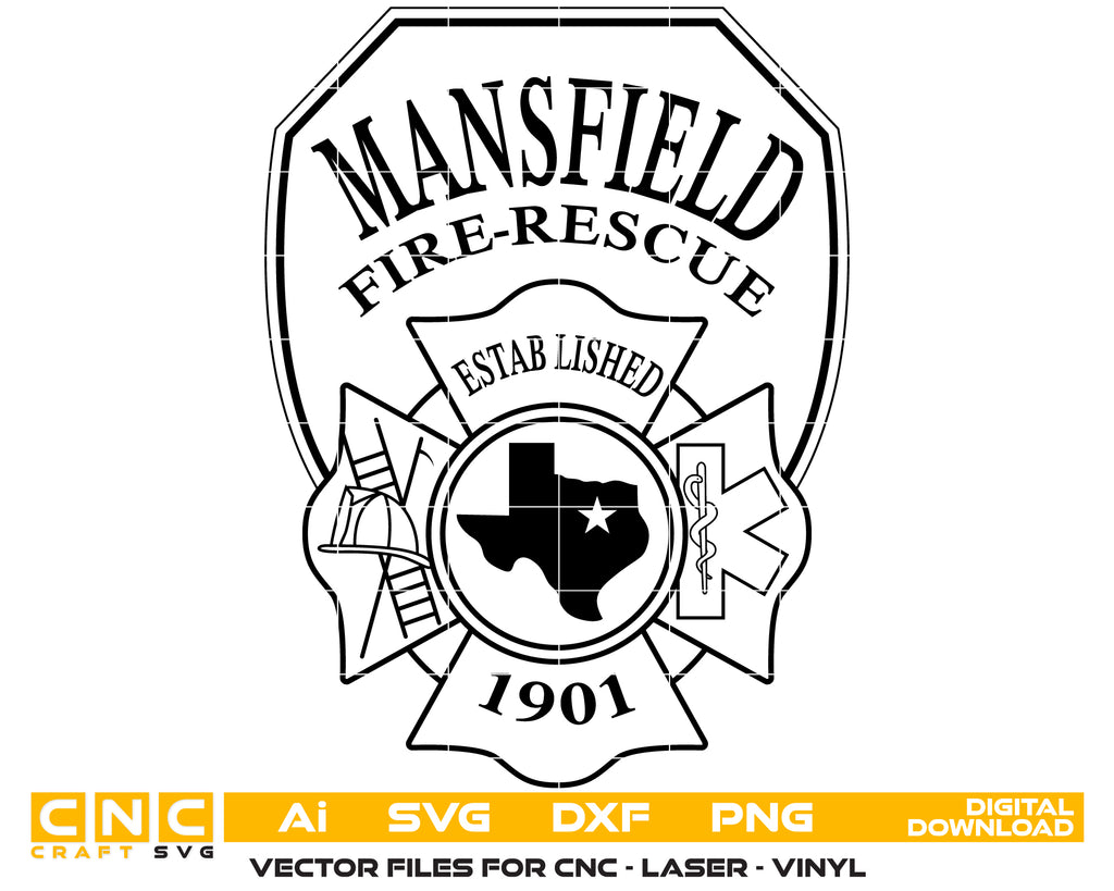 Celebrate the bravery, service, and dedication of Texas firefighters with this Mansfield Fire Department Patch SVG — a crisp, high-quality vector design perfect for crafting, printing, engraving, and commemorative projects.