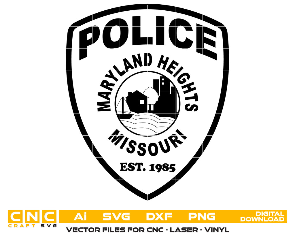 Download the Maryland Heights, Missouri Police Badge in clean, scalable vector format—perfect for laser engraving, vinyl decals, uniform patches, plaques, signage, and law enforcement tribute projects. Carefully crafted to ensure sharp, professional-quality results on any material or machine.