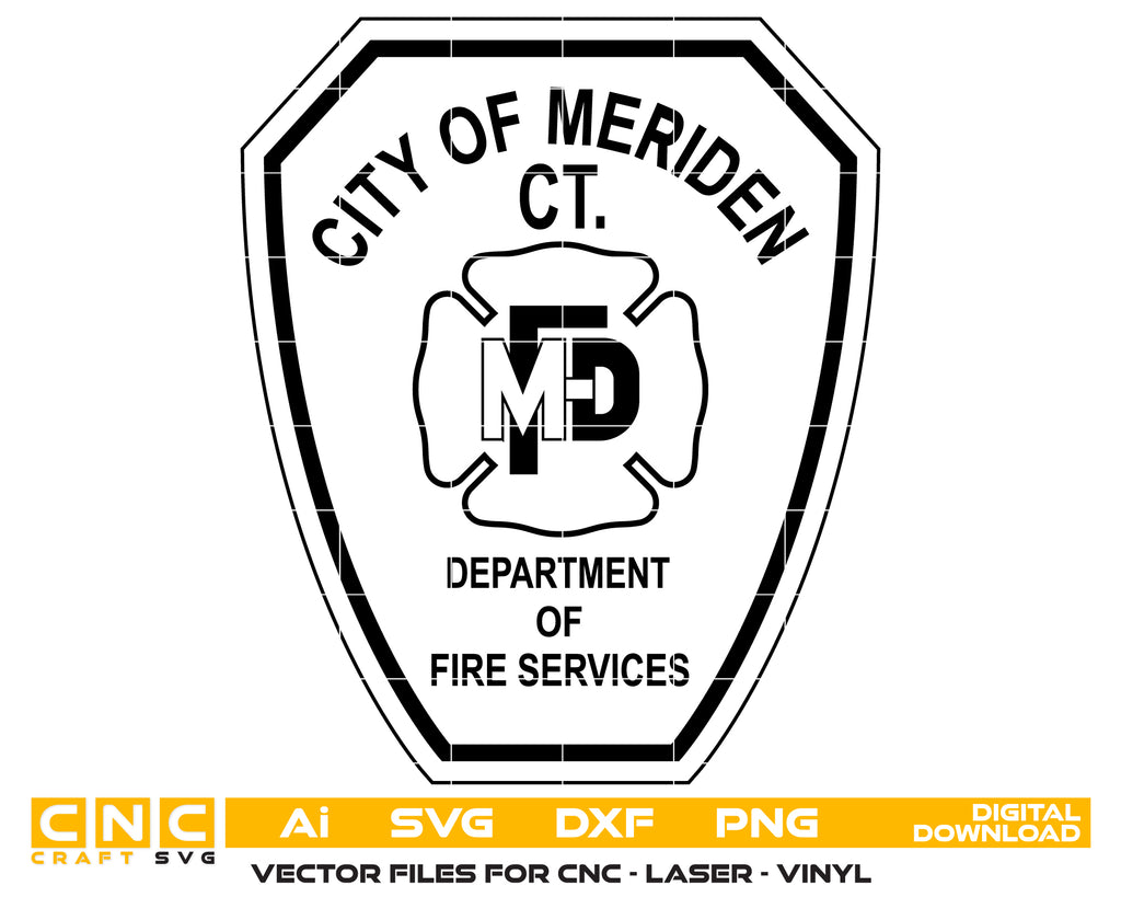 Celebrate the bravery, service, and dedication of Connecticut firefighters with this Meriden Fire Department Patch SVG — a crisp, high-quality vector design perfect for crafting, printing, engraving, and commemorative projects.