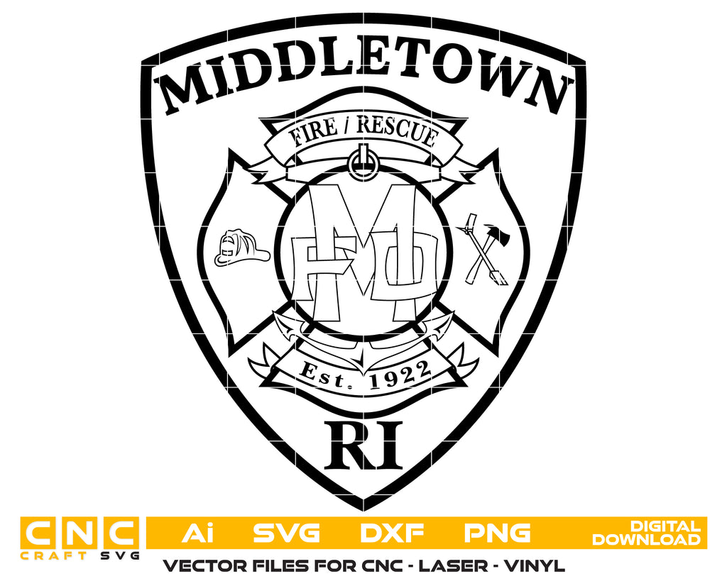 Celebrate the bravery, service, and dedication of Rhode Island firefighters with this Middletown Fire Department Patch SVG — a crisp, high-quality vector design perfect for crafting, printing, engraving, and commemorative projects.