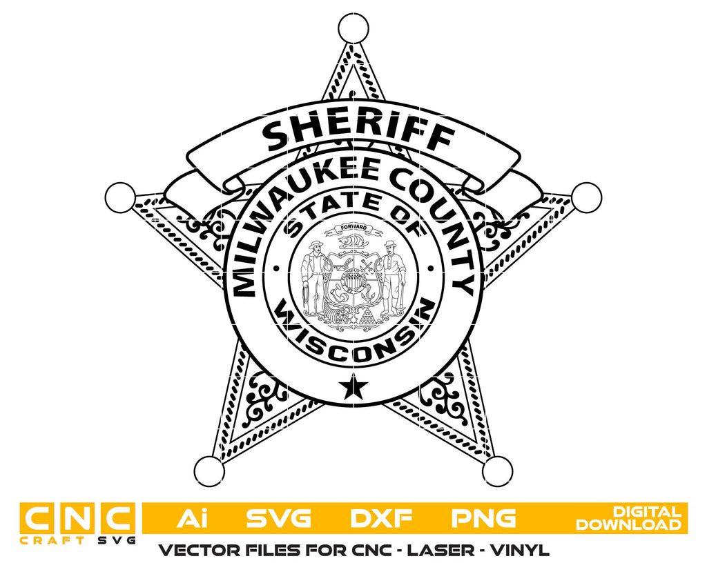 Download a professionally redrawn Milwaukee County Sheriff’s Office Badge SVG featuring crisp detailing, smooth vector lines, and perfect scalability. This premium-quality vector design is ideal for Cricut, Silhouette, CNC cutting, laser engraving, vinyl decals, plaques, apparel printing, signage, and digital/print media.