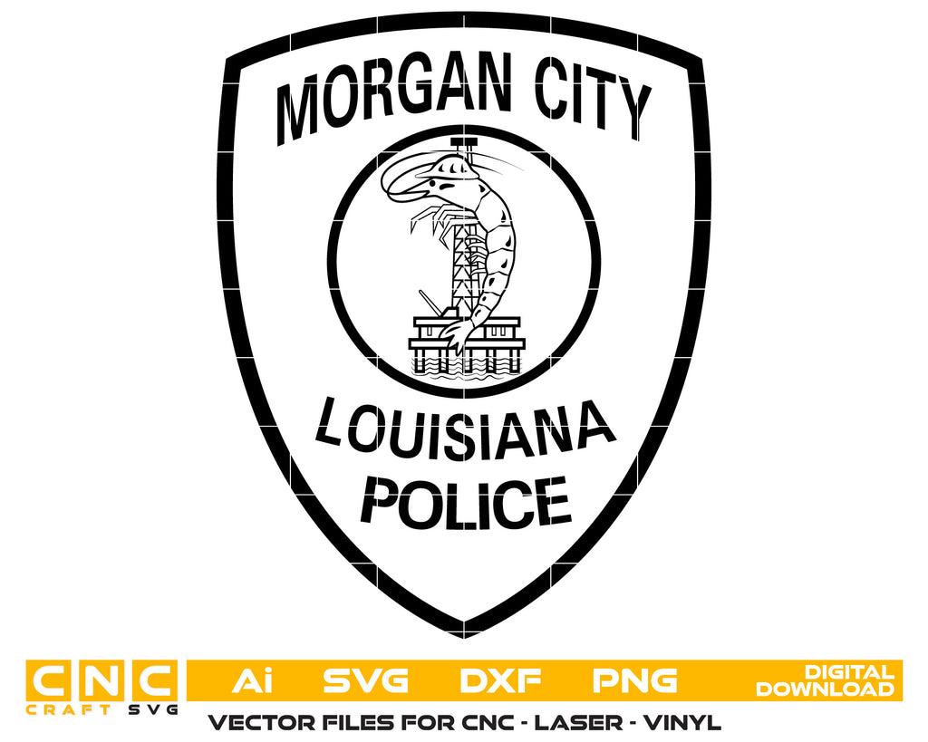Get the Morgan City Police Department Patch as a high-quality digital vector file, perfect for Cricut, Silhouette, Glowforge, and other cutting and engraving machines. Use this design to create personalized gifts, custom apparel, signs, decals, or tribute artwork for law enforcement support.
