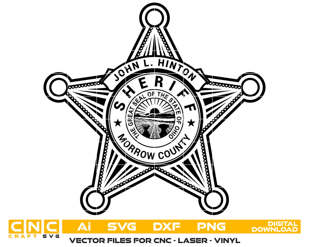 Create professional-quality law enforcement designs with this Morrow County Sheriff Badge SVG, a clean and detailed vector badge inspired by the Morrow County Sheriff’s Office. Designed for accuracy and clarity, this badge artwork is ideal for high-quality cutting, engraving, and printing applications. Perfect for plaques, decals, uniforms, signage, and collectible sheriff badges.