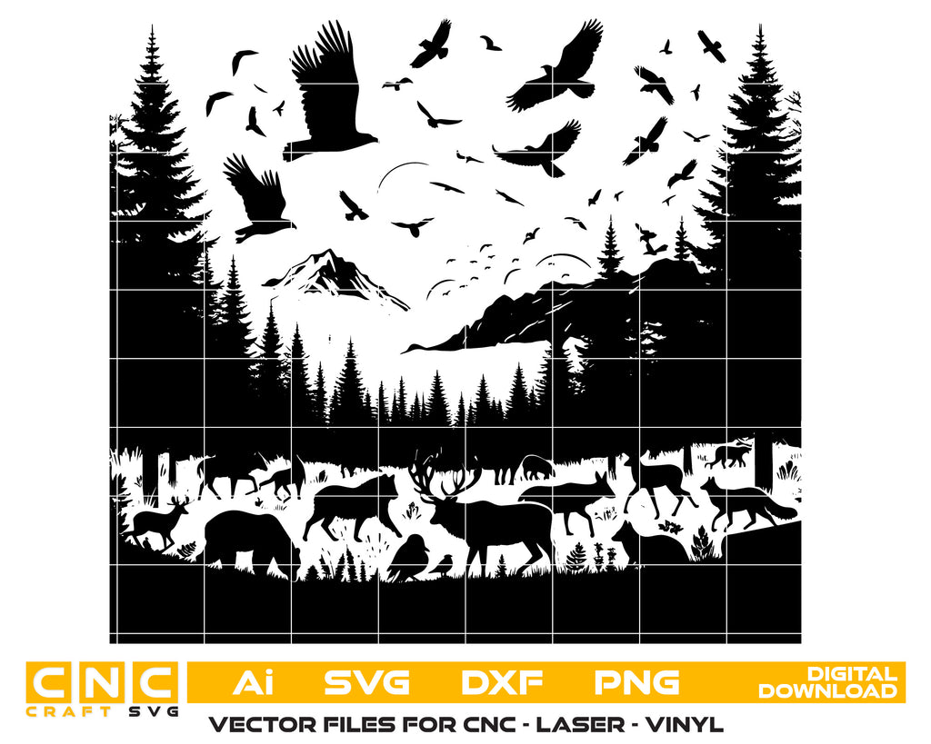 Capture the essence of the wilderness with this Mountain Landscape Silhouette Vector Art, designed for CNC cutting, laser engraving, and woodworking. Ideal for crafting rustic signs, outdoor-themed décor, and artistic wall pieces, this file ensures clean, precise cuts for wood, metal, and acrylic materials.