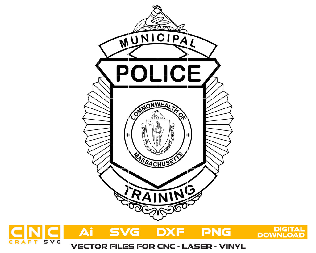 Honor the dedication, skill, and professionalism of law enforcement trainees with this Municipal Police Training Badge SVG — a crisp, high-quality vector design perfect for crafting, printing, engraving, and commemorative projects.