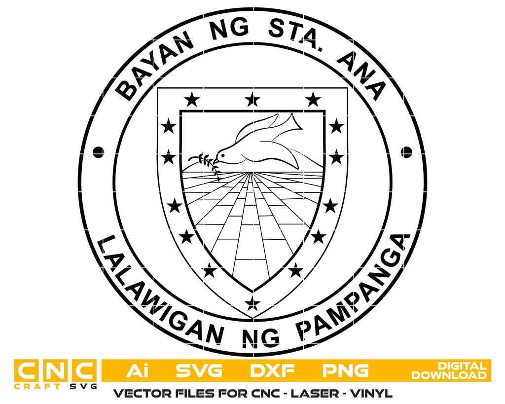 Download a clean and detailed vector version of the Municipality of Santa Ana, Pampanga, Philippines Logo — perfect for engraving, printing, and cutting. This digital design is ideal for use with Cricut, Silhouette, Glowforge, and other machines. Use it on signs, t-shirts, tumblers, plaques, or any custom project that celebrates Santa Ana's rich history and vibrant community.