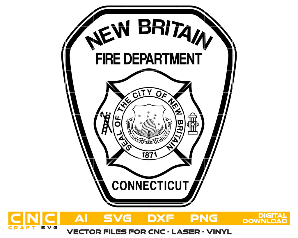 Celebrate the service and dedication of Connecticut firefighters with this New Britain Fire Department Logo SVG — a clean, high-resolution vector design perfect for crafting, printing, engraving, and custom fire-service projects.