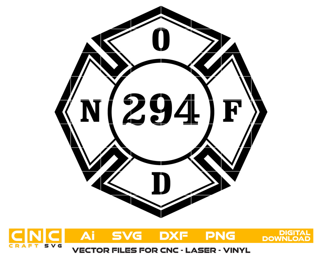 Get the detailed New Orleans 294 Fire Department Badge in high-resolution vector format—perfect for engraving, decals, apparel, and fire service tribute designs.