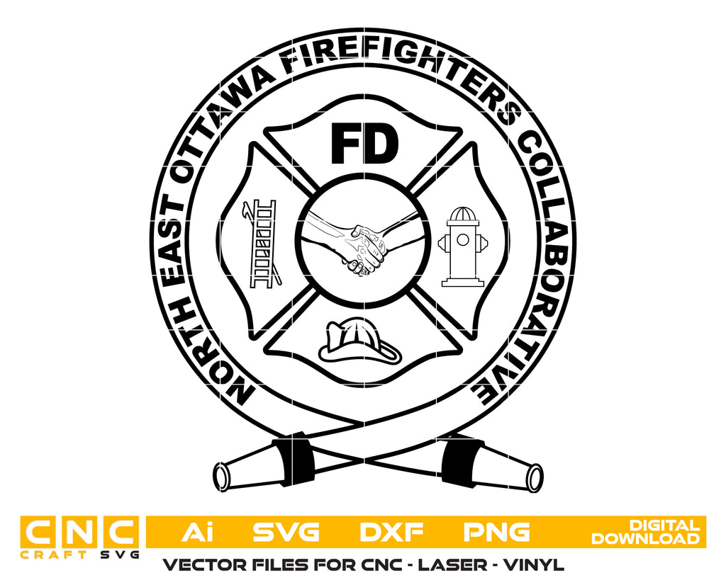 Summary: Showcase the spirit of cooperation with this professionally crafted North East Ottawa Firefighters Collaborative logo, ready for precise engraving and cutting.