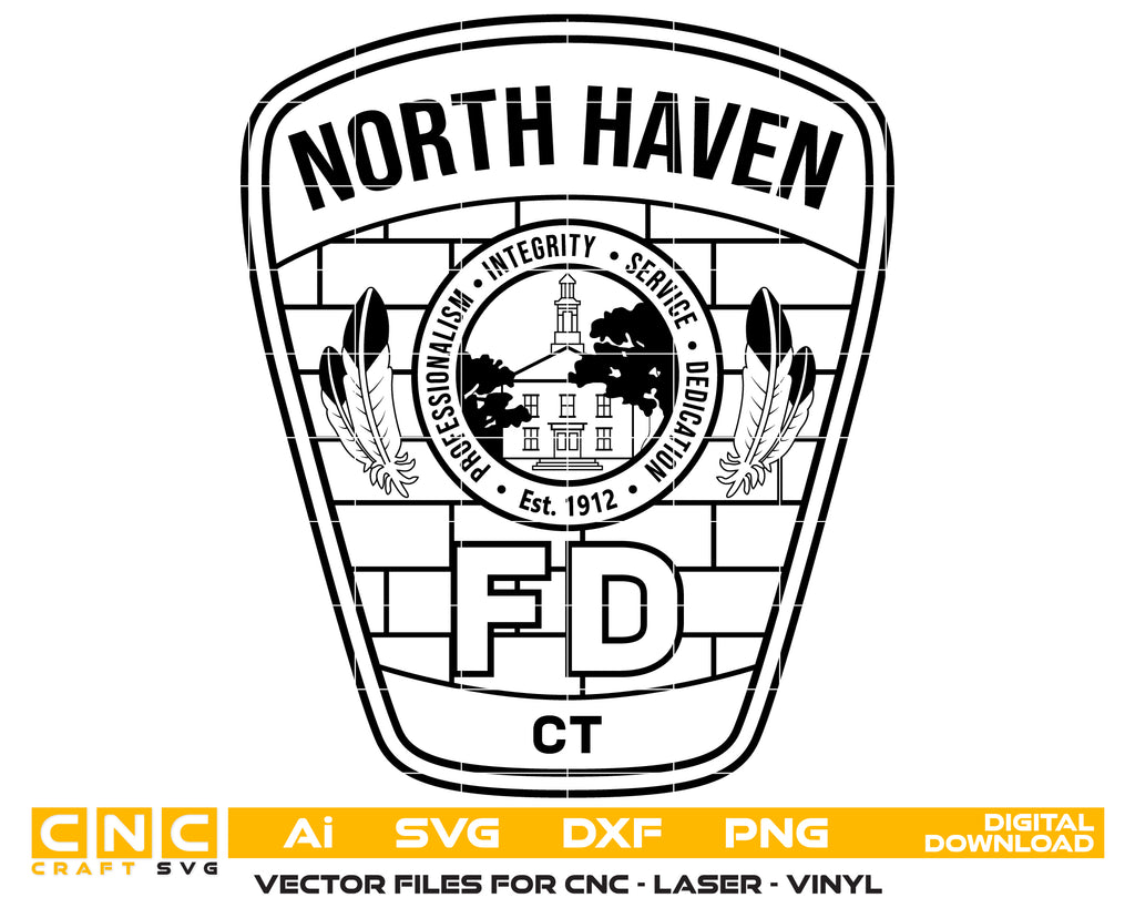 The North Haven Fire Department Badge SVG is a professional Connecticut firefighter emblem recreated in sharp vector format. Perfect for CNC cutting, laser engraving, vinyl decals, uniform decoration, commemorative plaques, and station signage, this badge ensures crisp, scalable detail. With precise vector lines, it performs seamlessly on wood, metal, fabric, and acrylic. A strong choice for firefighter memorabilia, department recognition, and custom woodworking projects, this file provides both authenticity and professional quality.