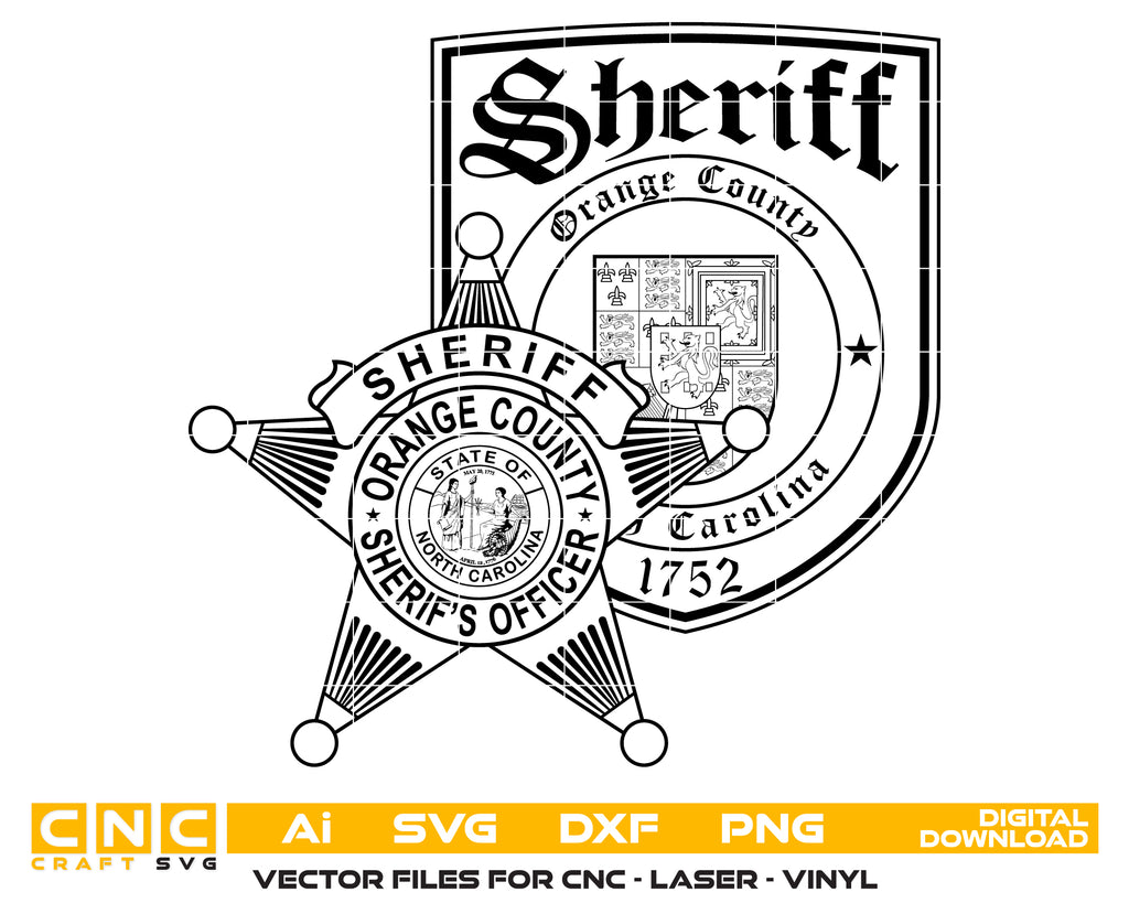 Download a high-quality Orange County North Carolina Sheriff’s Office Badge SVG, designed with precision vector detailing and smooth scalable lines. This professional-grade file is perfect for Cricut, Silhouette, CNC cutting, laser engraving, decals, apparel printing, signage, and law enforcement collectibles.