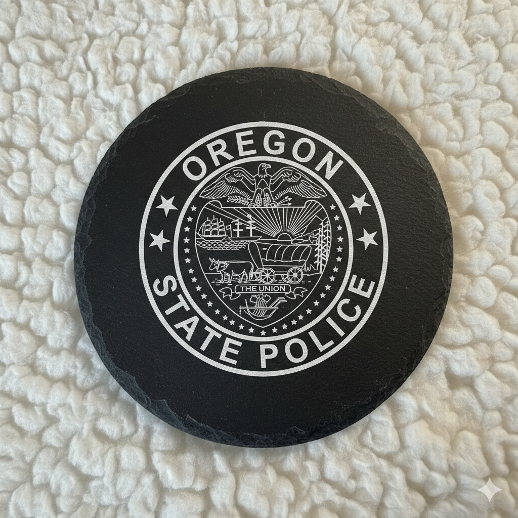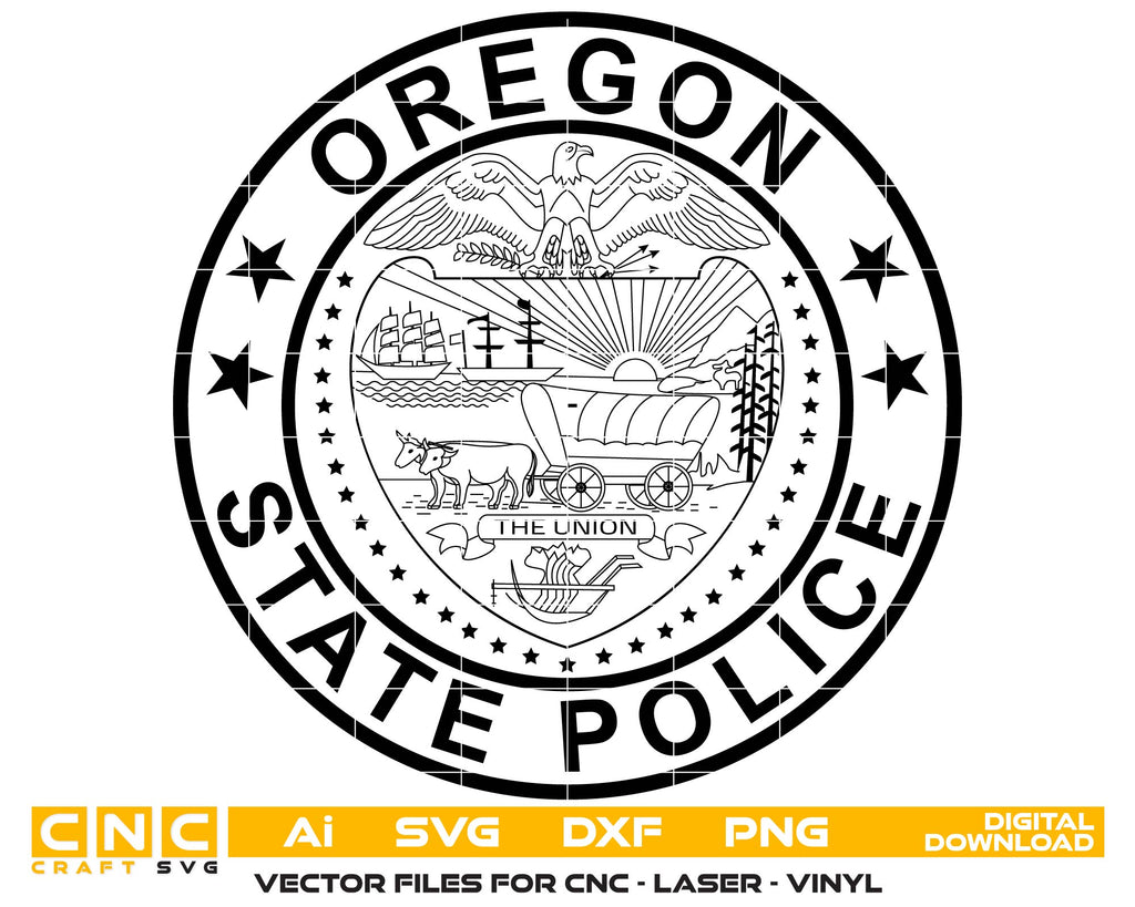Honor the guardians of the Beaver State with this Oregon State Police Patch SVG. This precision vector design faithfully recreates the department's shoulder patch, featuring the intricate Great Seal of Oregon at its center. Every detail—from the American eagle and covered wagon to the banner reading "The Union"—is meticulously traced for high-quality CNC routing and laser engraving. Perfect for creating wooden flags, retirement plaques, and custom department tributes.