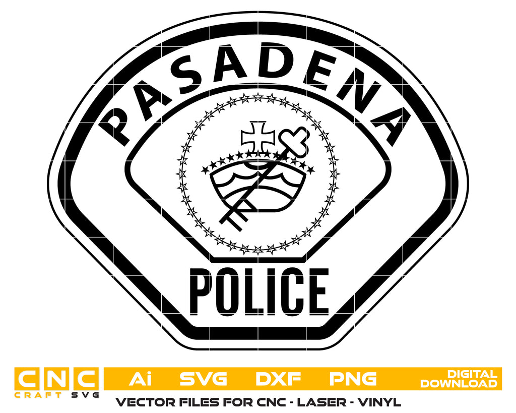 Create professional-quality law enforcement designs with this Pasadena Police Logo SVG, a clean and detailed vector logo inspired by the Pasadena Police Department. Designed for accuracy and clarity, this logo artwork is ideal for high-quality cutting, engraving, and printing applications. Perfect for plaques, decals, uniforms, signage, and collectible police logos.
