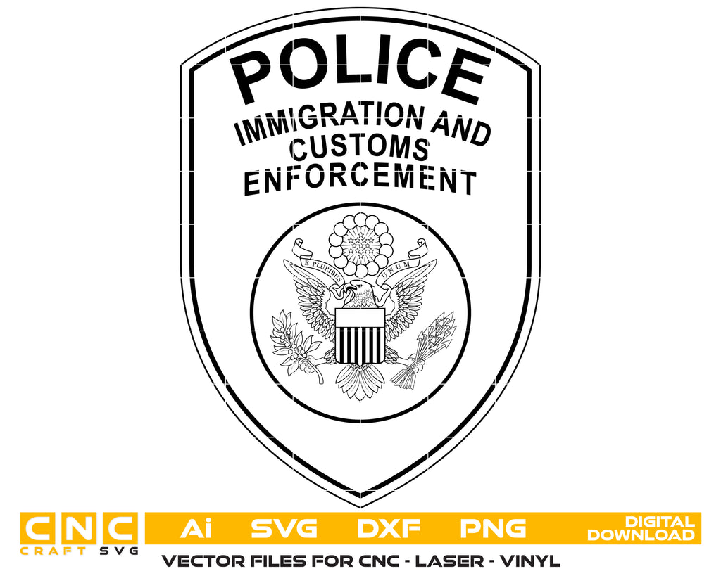 Add professional detail and color to your law enforcement projects with the Police Immigration & Customs Enforcement Patch SVG. This full-color, layered vector patch is perfect for laser engraving, CNC cutting, vinyl decals, plaques, uniforms, and signage. Designed to maintain clarity and accurate colors at any size, it works seamlessly on metal, wood, acrylic, leather, and fabric. Ideal for department branding, commemorative displays, and collectible patches tied to Immigration & Customs Enforcement.
