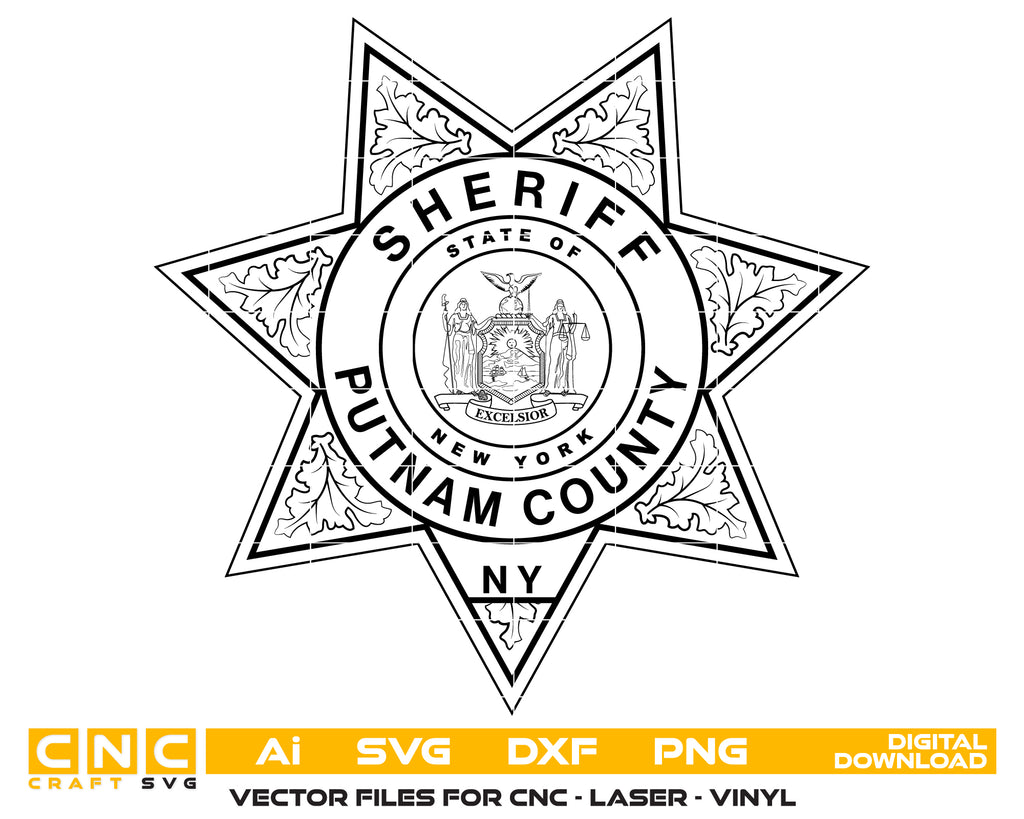 Create professional-quality law enforcement designs with this Putnam County Sheriff Badge SVG, a clean and detailed vector badge inspired by the Putnam County Sheriff’s Office in New York. Designed for accuracy and clarity, this badge artwork is ideal for high-quality cutting, engraving, and printing applications.