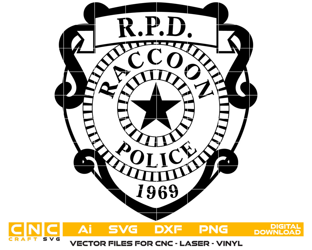 Download a clean and detailed vector version of the Raccoon Police Department Badge — perfect for engraving, printing, and cutting. This digital design is ideal for use with Cricut, Silhouette, Glowforge, and other machines. Use it on plaques, t-shirts, tumblers, signs, or any custom project that pays tribute to law enforcement and public safety.