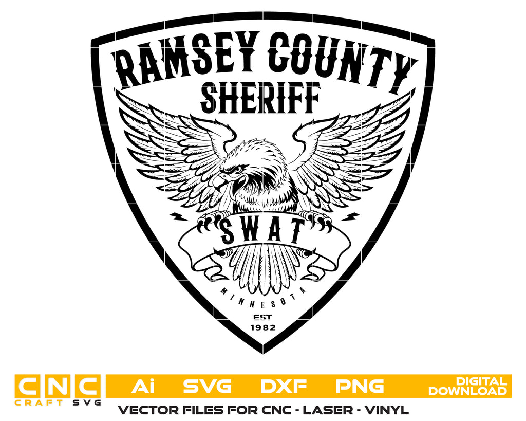 Create professional-quality law enforcement apparel and branding with this Ramsey County SWAT Officer Flexfit Hat Logo SVG, a clean and detailed vector logo designed for tactical and department use. Crafted for accuracy and sharp detail, this logo artwork is ideal for high-quality cutting, embroidery prep, engraving, and printing applications. Perfect for Flexfit hats, uniforms, decals, signage, and law enforcement collectibles.