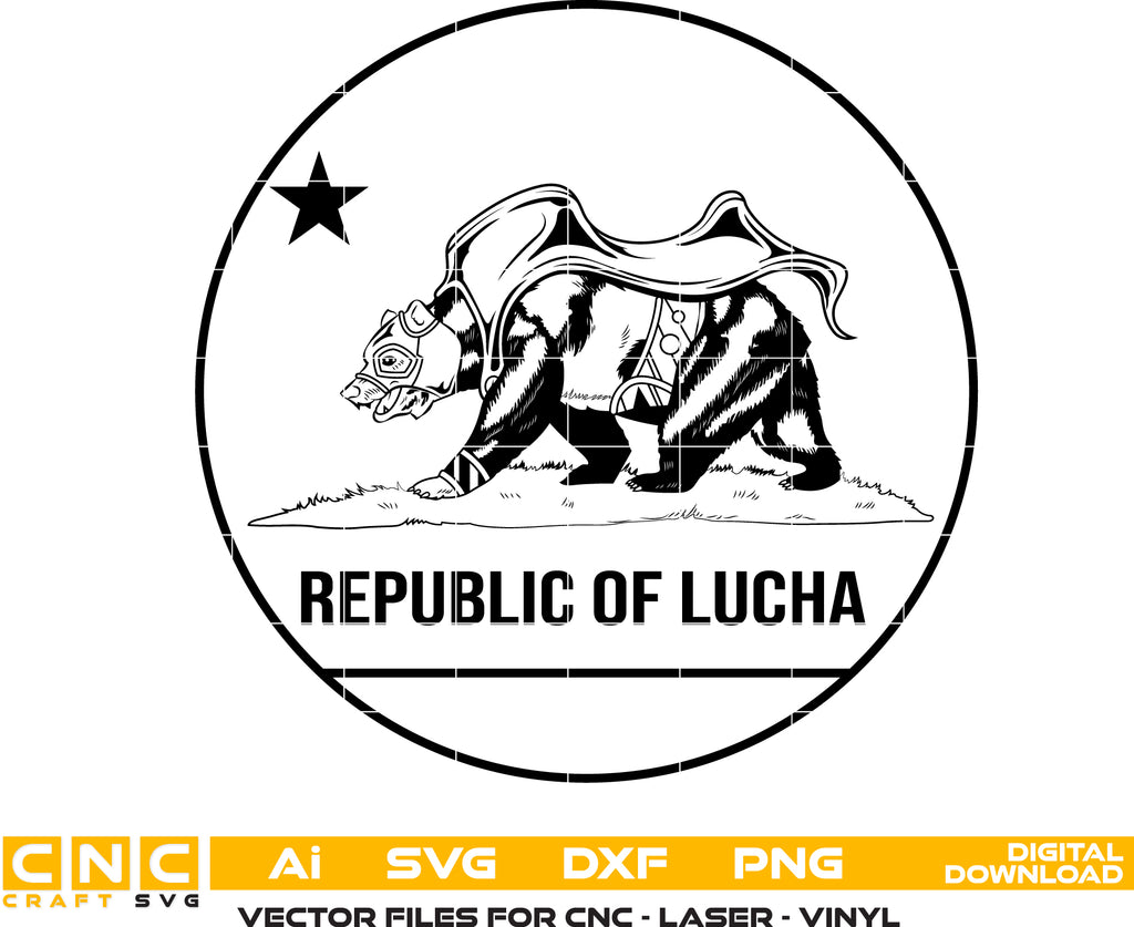 The Republic of Lucha Seal SVG celebrates the spirit, heritage, and artistry of Lucha Libre wrestling. Designed in high-quality scalable vector format, this emblem is ideal for CNC cutting, laser engraving, vinyl decals, apparel, signage, and collectible projects. Perfect for wrestling fans, merchandise creators, and graphic designers, it maintains crisp, professional detailing on metal, wood, fabric, or acrylic, honoring the iconic imagery of Lucha Libre.