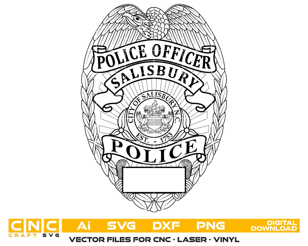 Crafted for accuracy and clarity, this Salisbury Police Officer badge vector maintains crisp edges and fine details at any size — ensuring flawless results for engraving, printing, and digital use.