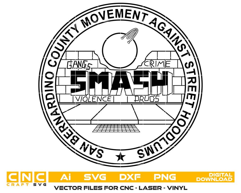 Honor a unique piece of California law enforcement history with this San Bernardino Movement Against Street Hoodlums (M.A.S.H.) Logo SVG.