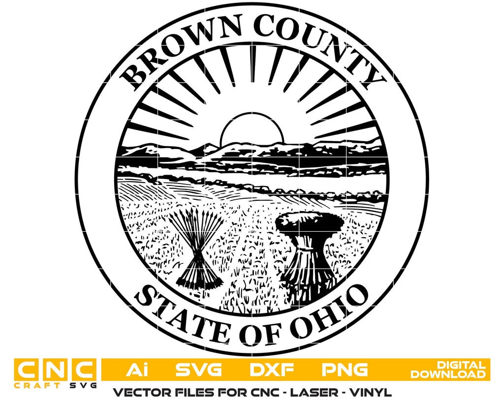 Enhance your crafting projects with our detailed Seal of Brown County, Ohio Vector art! With SVG, DXF, PNG, and AI files included, you can easily personalize your laser engravings, woodworking creations, and all printing needs. Create unique and professional-looking designs effortlessly. Get your hands on these versatile digital files today!