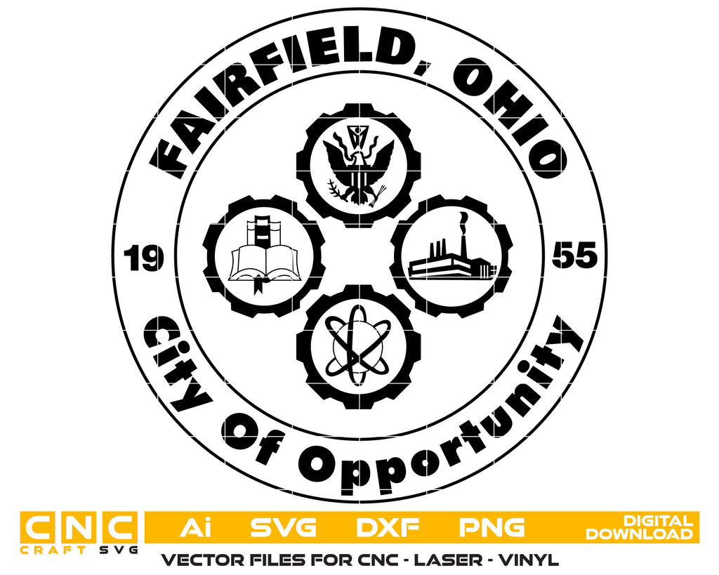 Showcase the official emblem of Fairfield, Ohio with this Seal of Fairfield, Ohio SVG — a crisp, high-quality vector design perfect for crafting, engraving, printing, and city-themed projects.