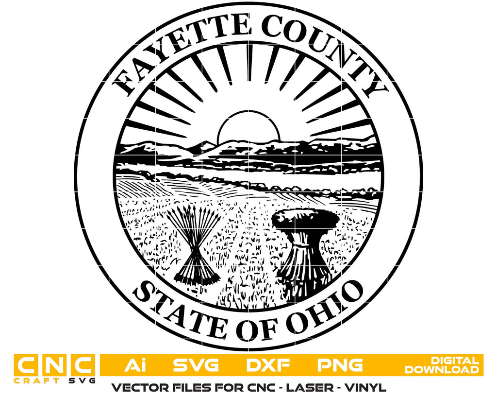 Enhance your crafting projects with our detailed Seal of Fayette County, Ohio Vector art! With SVG, DXF, PNG, and AI files included, you can easily personalize your laser engravings, woodworking creations, and all printing needs. Create unique and professional-looking designs effortlessly. Get your hands on these versatile digital files today!
