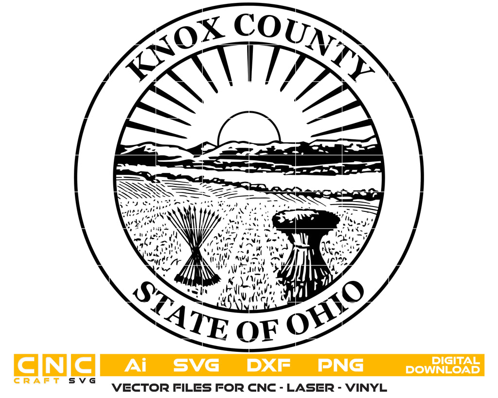 Add a touch of local charm with this Seal of Knox County, Ohio vector art design. Perfect for laser engraving, woodworking, and all printing projects. Includes SVG, DXF, PNG & Ai files for easy customization. Elevate your creations with this unique and versatile artwork!
