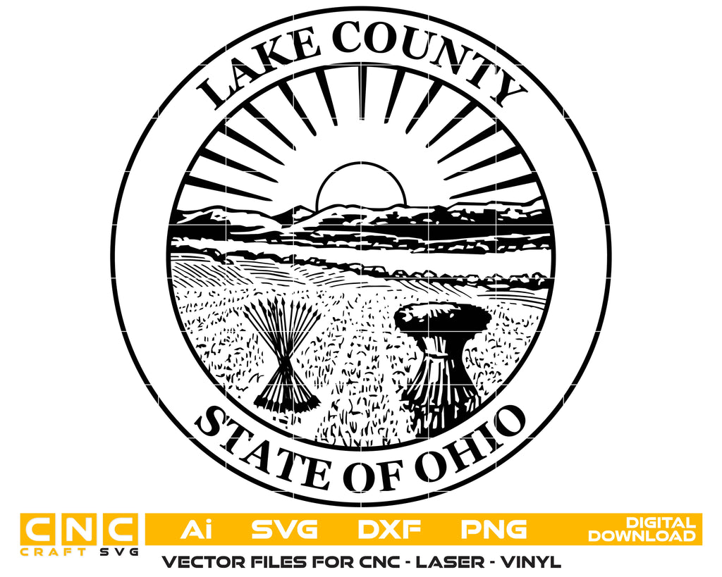 Add a touch of local charm with this Seal of Lake County, Ohio vector art design. Perfect for laser engraving, woodworking, and all printing projects. Includes SVG, DXF, PNG & Ai files for easy customization. Elevate your creations with this unique and versatile artwork!