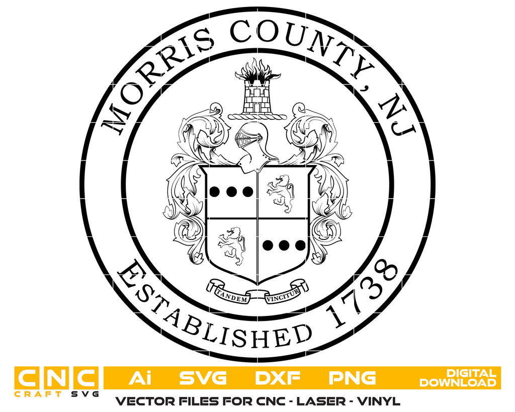 Showcase the official emblem of Morris County, New Jersey with this Seal of Morris County SVG — a crisp, high-quality vector design perfect for crafting, engraving, printing, and county-themed projects.