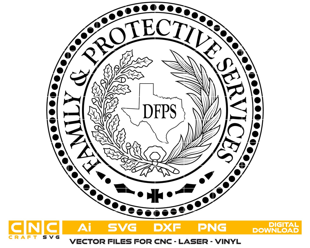 Celebrate civic identity with the Texas Family & Protective Services Seal SVG. This detailed state government emblem is provided in professional vector format, making it versatile for CNC machines, laser engravers, and hobby cutters like Cricut or Silhouette. Whether you’re creating official plaques, uniform decals, signage, or custom woodworking projects, the design maintains sharp detail across materials from wood and metal to fabric and acrylic. A perfect choice for makers, collectors, and civic displays.