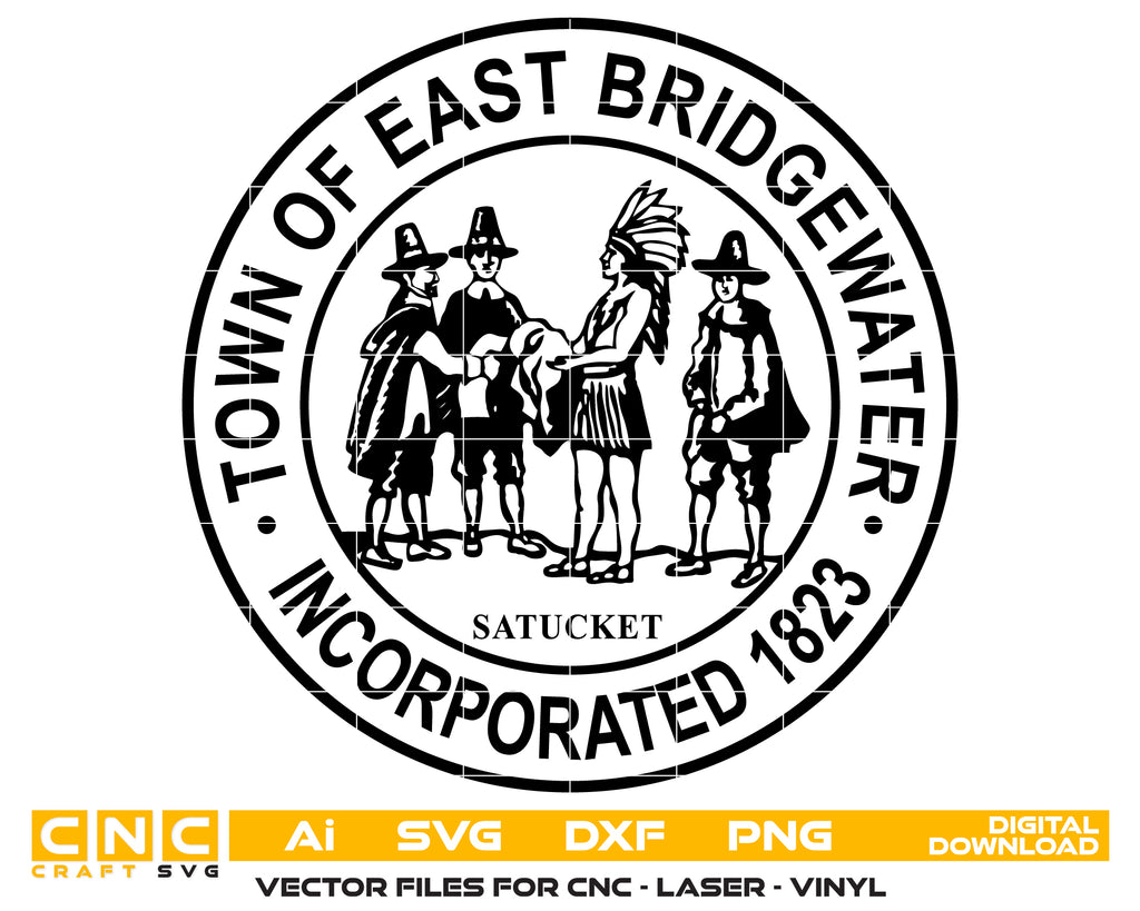 The Seal of the Town of East Bridgewater SVG is a historic Massachusetts official emblem recreated in precise vector format. Designed for professional use, it’s perfect for CNC cutting, laser engraving, vinyl decals, government signage, commemorative plaques, and municipal branding. With crisp vector lines, it delivers scalable results on wood, metal, fabric, and acrylic. A strong choice for civic recognition, town memorabilia, and custom woodworking projects, this seal ensures both authenticity and professional quality.