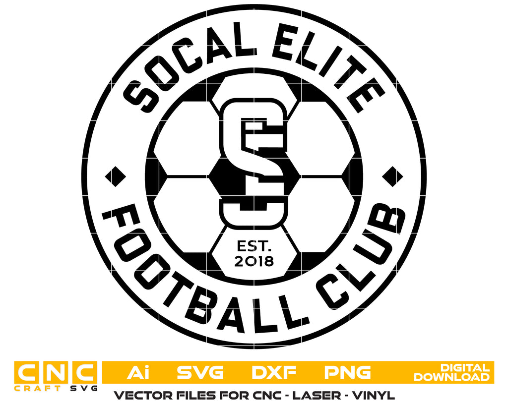 The SoCal Elite FC Logo SVG represents the energy, pride, and athletic spirit of the Southern California Elite Football Club. Designed in high-quality scalable vector format, this logo is ideal for CNC cutting, laser engraving, vinyl decals, apparel, signage, team gear, and collectible projects. Perfect for soccer players, fans, clubs, and designers, it maintains crisp, professional detailing on metal, wood, fabric, or acrylic, showcasing the identity of SoCal Elite FC.